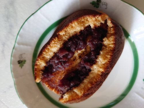 店舗での人気商品で、やや小さめなので、食べやすく、黒糖の香り感じるバランスの良いどら焼きです。