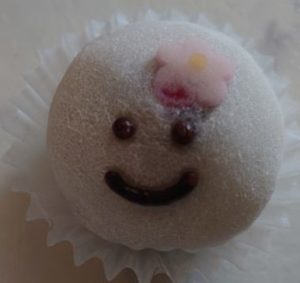スマイルいちご大福🍓髪飾りの🌸も何とも愛らしいです。