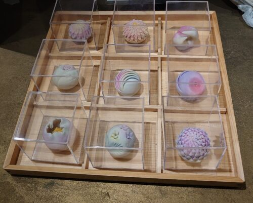 本日は翡翠を生菓子では購入しました。美しすぎるみための生菓子は山芋や白玉使用で