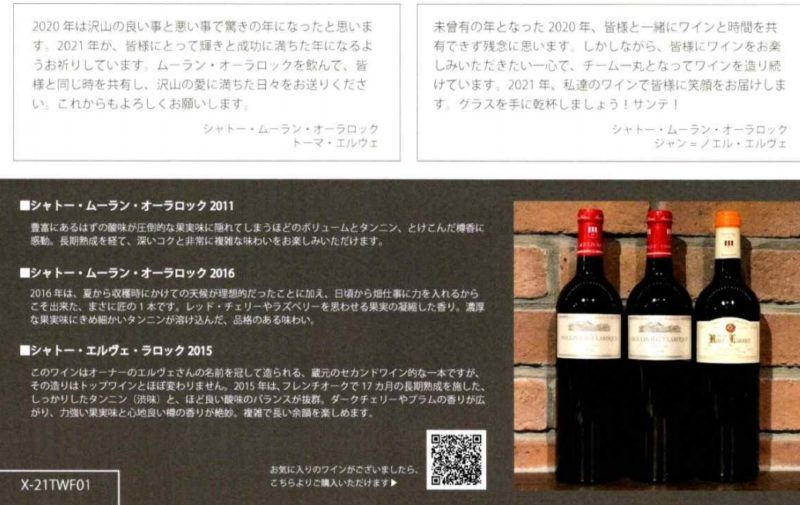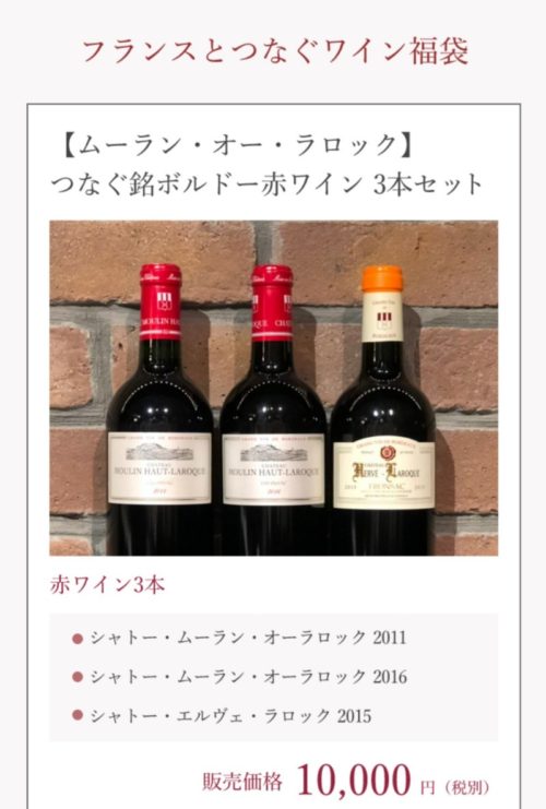 幾度も購入した事があるムーラン オ ラロックは、エルヴェ ラロック以外は通常5,000円以上するの商品です。フランスとつなぐワイン福袋は、生産者メッセージ入りです。