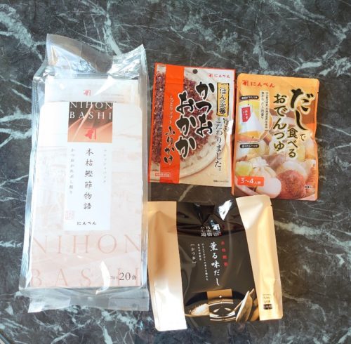 ●内容:本枯鰹節2.5g×20袋、薫る味だしかつお8g×6袋、かつおおかかふりかけ40g、だしで食べるおでんつゆ(おでんつゆ58g、だしパック3g)