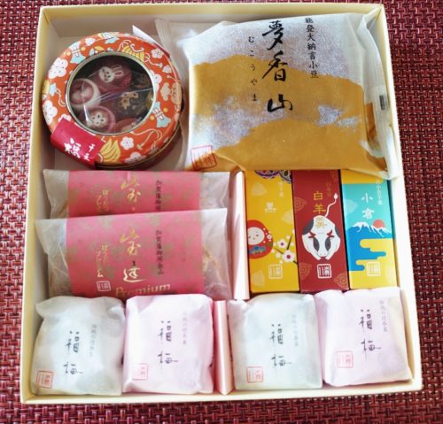 宝達プレミアム(中段左)は能登大納言と能登栗を使用。かくし味に能登の粗塩卵や砂糖にもこだわった厳選プレミアム和菓子。金粉があでやかで金沢らしいです。