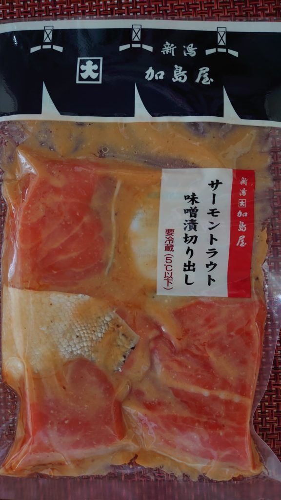 日本橋三越本館1階今半では17日まで期間限定¥980税込/100g 黒毛和牛すき焼き用or焼肉用と目玉商品販売をしています。 こちらは約200gで3枚でした。さし具合もちょうど良く、今半の包装紙は昔の浅草の絵図で風情があります。 サーモントラウト味噌漬け切... -