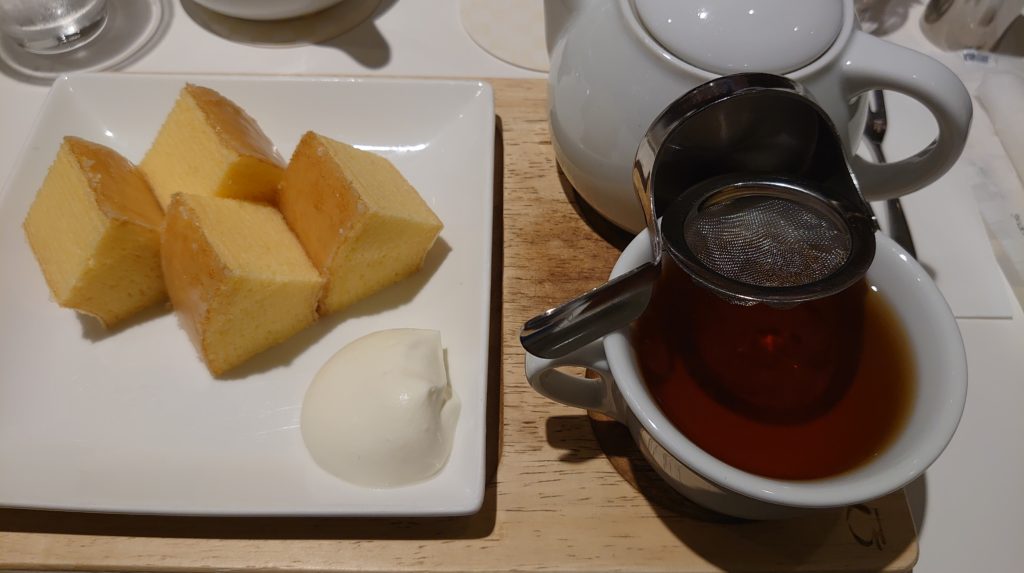 焼きたての、しっとりふわふわの、4つにカットされたバームクーヘンに生クリームが添えてあるバームクーヘンセット¥1,060税別は販売されている, クラブハリエの横にカフェが併設されています。平日は比較的空いている時間もあります。 通常のバームクーヘ...