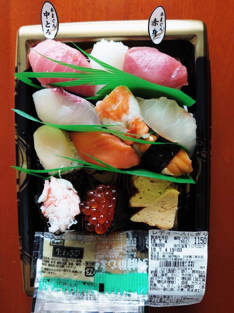 日本橋三越1階鮮魚コーナーで販売されているレディースにぎり国産米に本まぐろの赤身と中トロ、を含む合計11貫+卵ですが、しゃり&寿司のネタの量は通常の半量くらいだと思います。ねたの味は小さくても十分味わえ、見ためがかわいい¥1,150税込です。 ... -