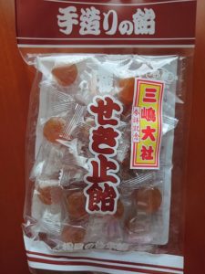 せき止飴¥350税込個別包装で、水飴、グラニュー糖、三温糖、ウイキョウ、カンキョウ、