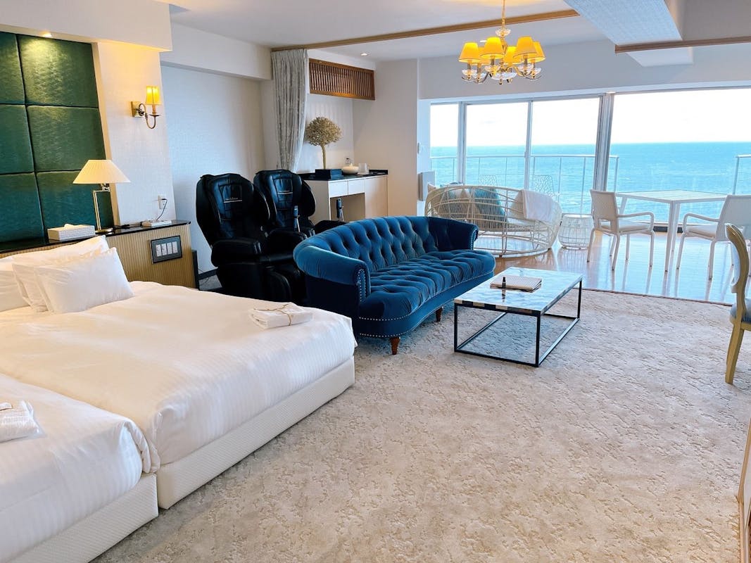 ツイン99.91平米 リビング&ベッドルーム+インガーデン+室内展望風呂+岩盤浴+屋外露天風呂定員: 1名~2名階数: 2階