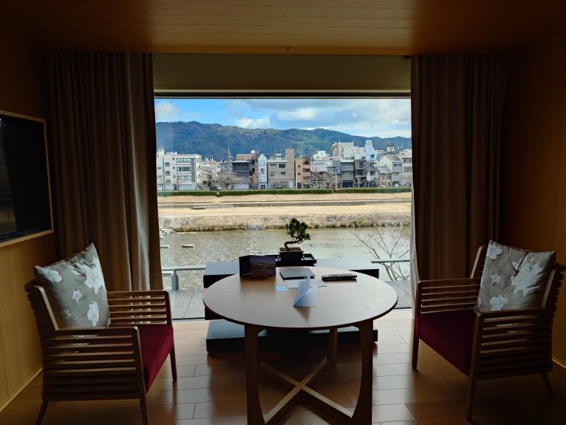 東向きの窓一面には鴨川と東山三十六峰の絶景。ザ・リッツ・カールトン京都の象徴とも言うべきお部屋です。