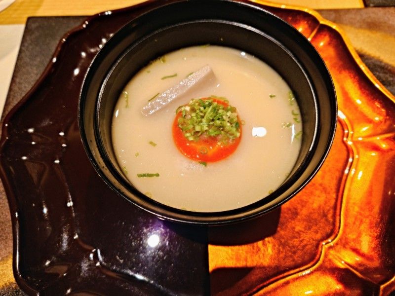 White Miso Soup, Mochi, Taro Potato, Carrot, Japanese Parsley, Yuzu