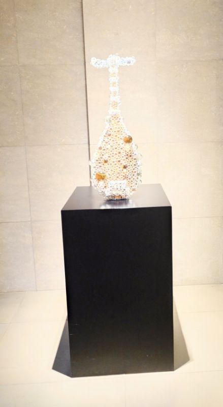 内容: 本物の琵琶を、無数のクリスタルビーズ(セル)で覆った彫刻作品です。