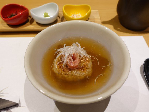 Grilled rice balls or Sushi 3 Each /焼きおにぎり茶漬け、または寿司3カンと魚のアラ潮汁