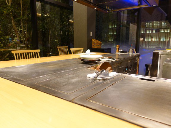 レストランは1か所で時間制予約で鉄板焼きカウンターがメインとなります。