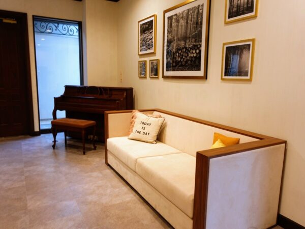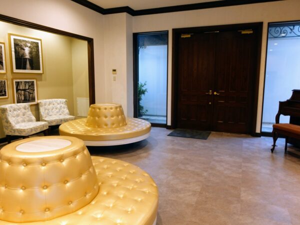 ブライダルチャペルも完備しているので、婚礼待合場所のような空間を通り抜けると~