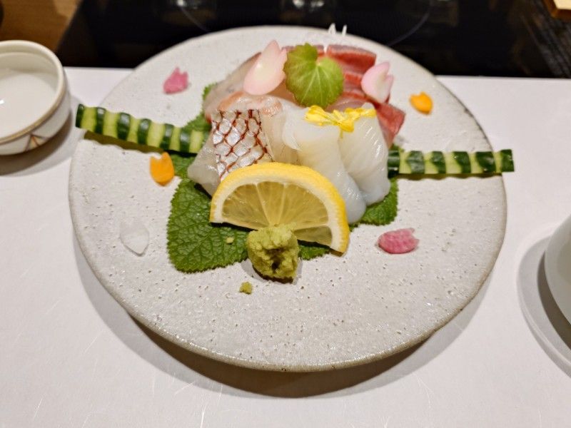 - 向付: 旬の魚三種盛り