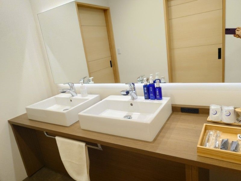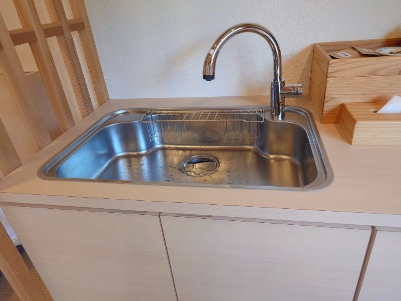 お茶やコーヒーはロビーでもフリーでいただけますが、客室にシンクがあるのは便利です。