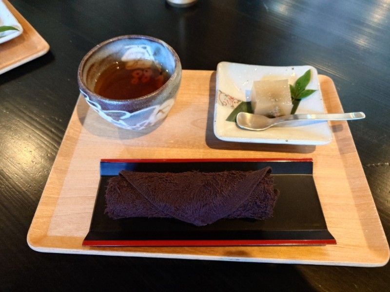 まずはロビーで、上品な和菓子をいただきながらのチェックイン。客室数が少ないからこそ行き届いたおもてなしに、到着早々、日常の忙しさが溶けていくのを感じます。