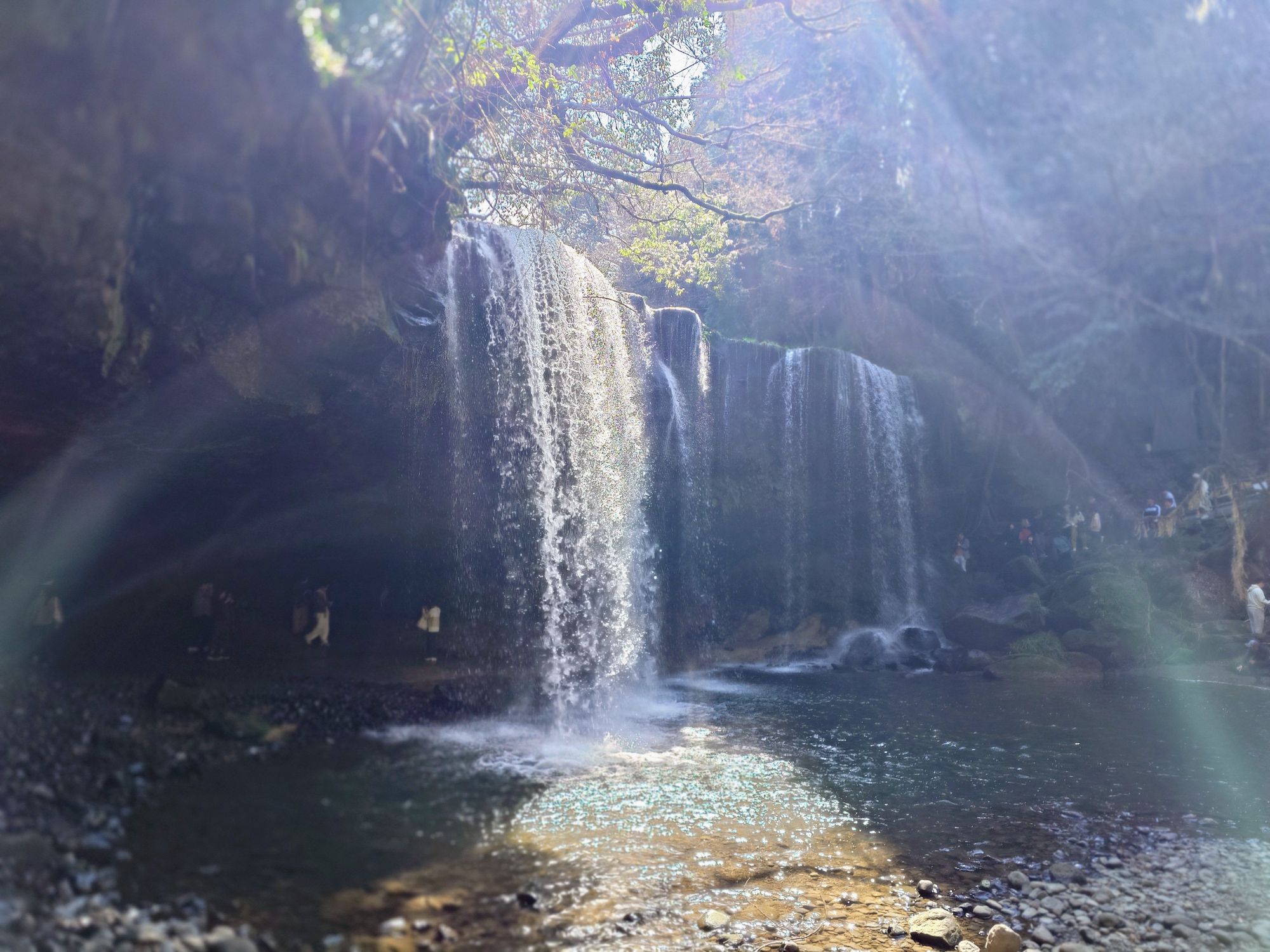 - マイナスイオンを浴びて: 滝の裏側は大きく削られており、ひんやりとした空気と力強い水のエネルギーを感じられます。