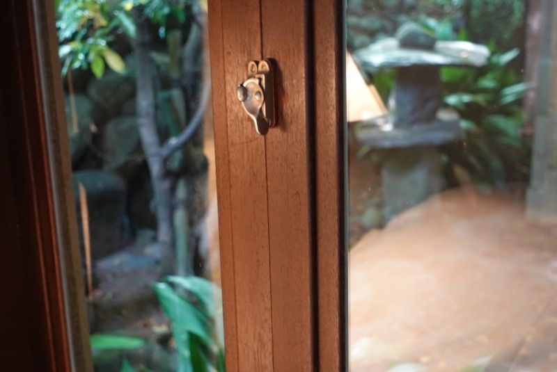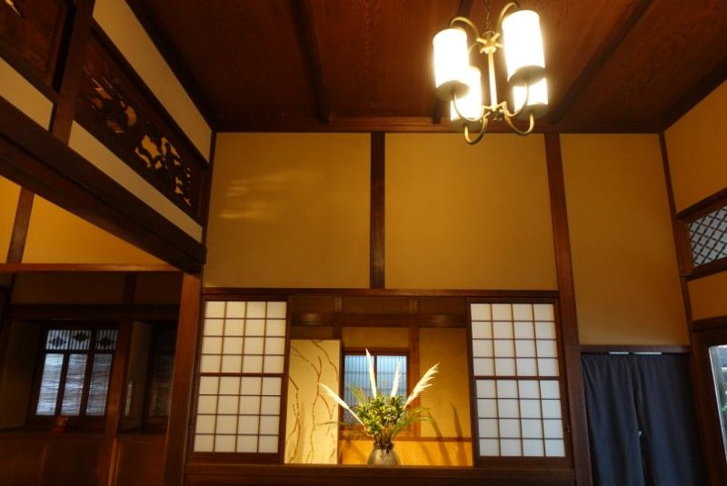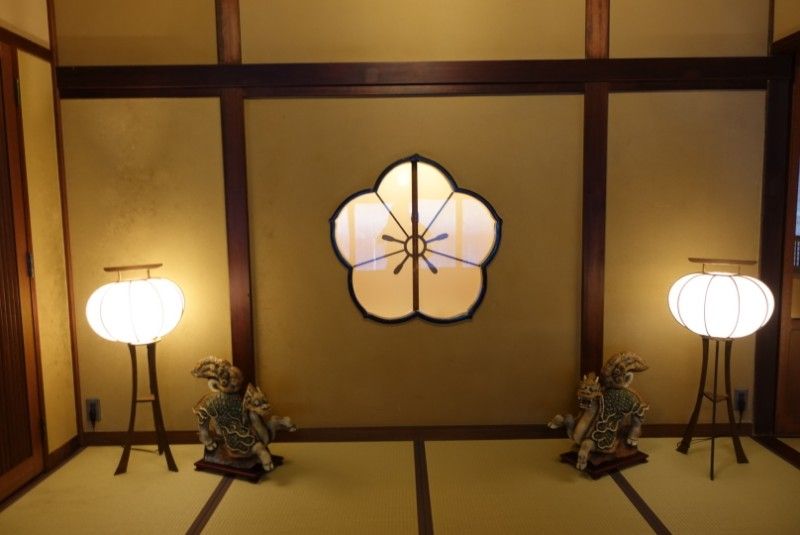 玄関正面には足立家の家紋である「桔梗紋」がお出迎えです。