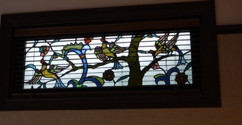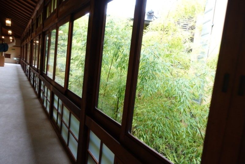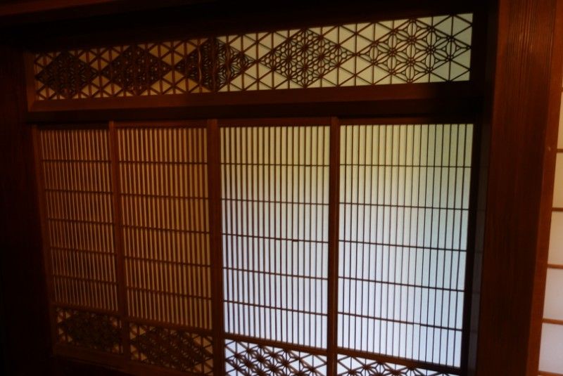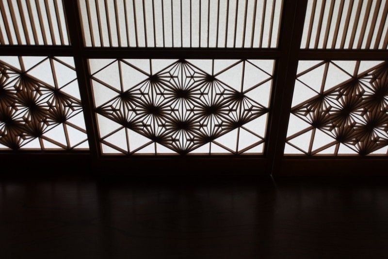 この家紋は大宴会場の摺りガラスに施された桔梗紋は、閉めても紋が透けて見えるという粋な計らいです。