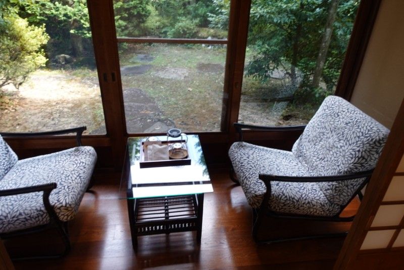 柔らかな木漏れ日が差す茶室サウナと温泉が流れる天狗サウナにて、 セルフロウリュサウナです。