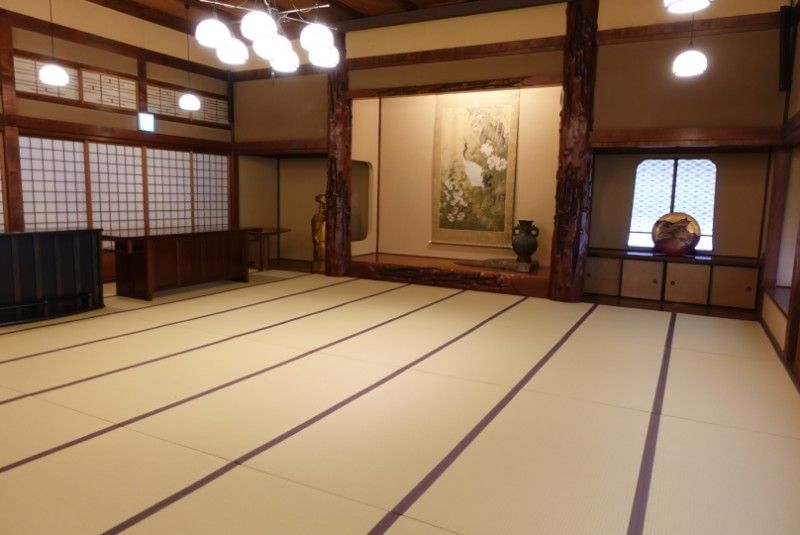 館内文化財ツアーは、当時の最高峰の匠の技と素材を堪能できます。大広間の銘木の柱は見どころです。