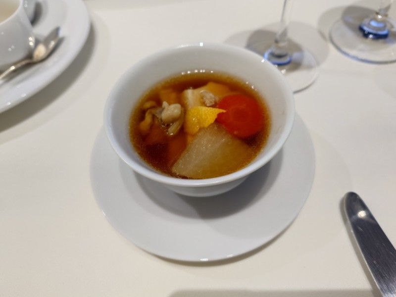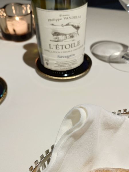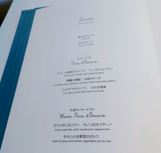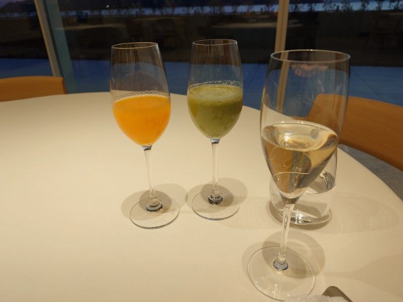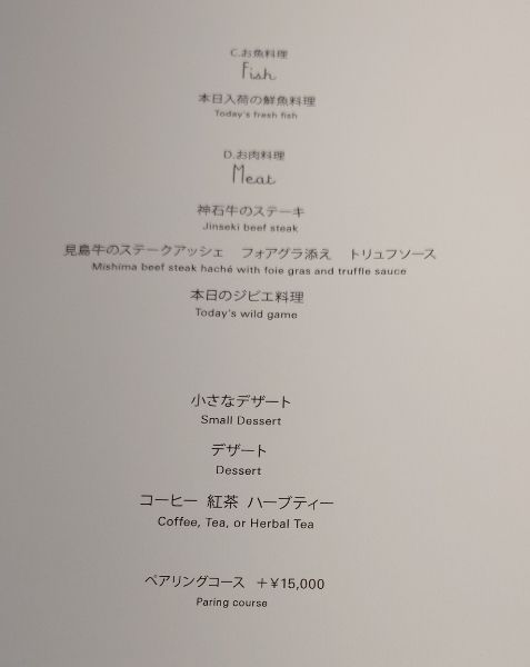 シャンパン、ワインのペアリング(夕食時5杯)と旬の食材によるフランス料理。