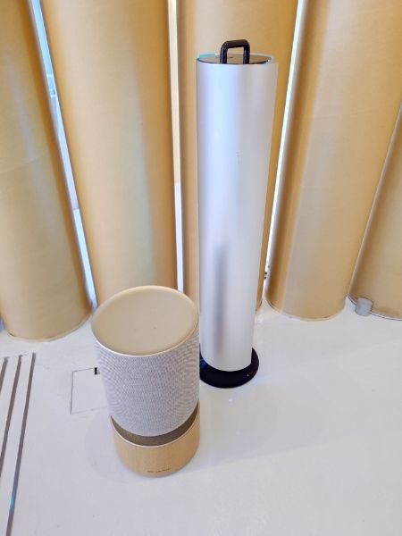 素材: サランラップの超大型芯のような、再生紙を筒状に固めた強度のある「紙管」を柱として使用しています。