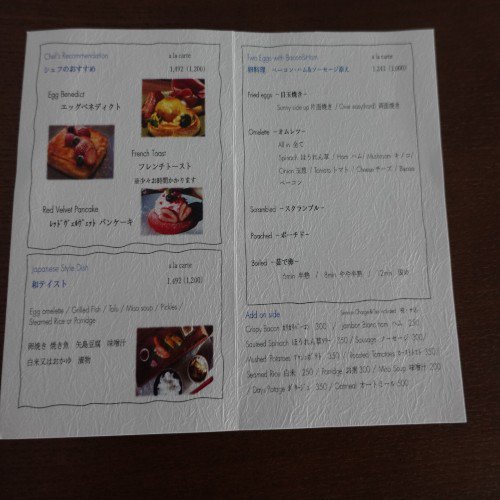 夕食ソノリテに比べるとカジュアルな感じとなり、オムレツやエッグベネディクトも