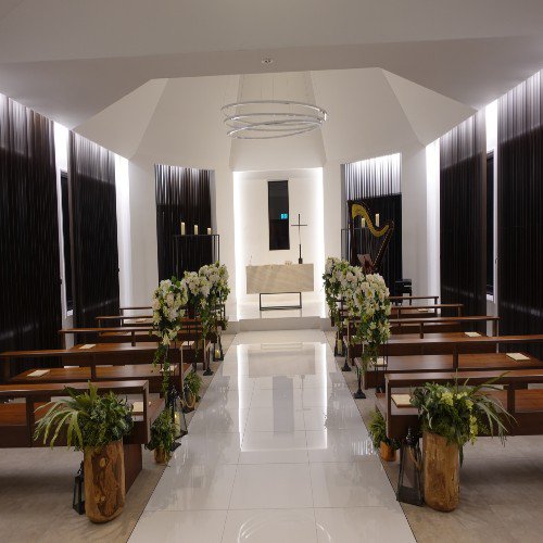 日も暮れると中庭は樹木のライトアップされ、幻想的です。
