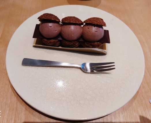エクレア¥550税込 ふわふわカスタードクリームにキャラメルの香りのプロフィットロールのようなケーキで間に挟まった、パリパリ超薄型チョコレートがポイントです。 コーヒーホット¥495税込 店内入口正面ディスプレイ 9月27日三井ショップパークコレド室... -