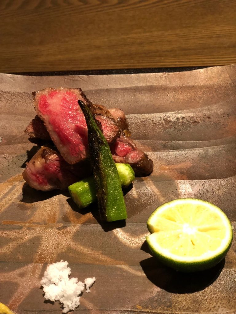 銀座ことひ日本料理しち十二候 でディナー。5名のグループで一休レストラン予約で【一休限定歓送迎会コース】フリードリンク付!隠岐牛のローストビーフ・網焼きなど全7品のコースを頂きました。 上品なお着物の女将さんがお出迎えで、ダークブラウンの木... -