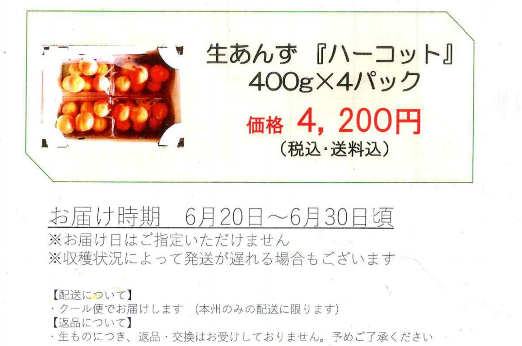 毎年購入している、千曲市産のハーコットは、甘味と酸味バランスが最高です。