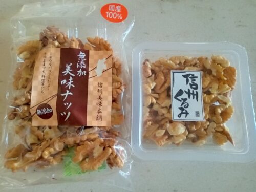 左:無添加生菓子 くるみは海外産とは比べ物にならない、木の実の香り豊かな大粒の、原材料★くるみ国産