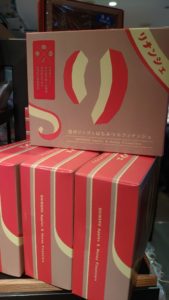 新入荷のリナンシェはフィナンシェのリンゴ粒々コンポート入りでパッケージも可愛い箱入りも販売されていました。1個¥210税込