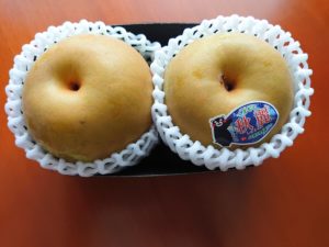梨と言えば、関東地方では千葉県産の商品が多く出回り、みずみずしく今の時期の美味しいフルーツですが、池袋西武の青果売場で品出しをしていた店員さんが、「しゅうれい、しゅうれい」熊本の美味しい梨が入荷ですー!と何回も連呼していたので、2個で¥864と他の梨に比べ少し割高でしたが、試しに購入しました。幸水×筑水の掛け合わせ品種で、2008年より流通が始まった熊本でも生産量の少ない、希少品種です。