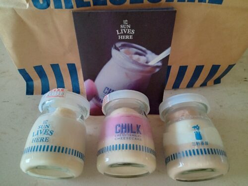ケーキと言っても、懐かしいのヨーグルト瓶に入ったCHILKは、三層の秘密の瓶詰めチーズケーキです。
