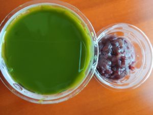 柔らかさの、濃厚抹茶に抹茶良さをを崩さない程よい量の粒あんが付いて来ます。京都の本店でも週末限定商品です。