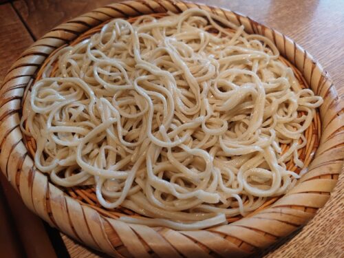 時間によって、入口での手打ち実演も見られます。蕎麦は二八蕎麦で、挽きかた、水、茹で方、たれの本枯れ節から作った“出汁”と“返し”を合わせた後の熟成までにもこだわったりと、こだわり満載の繊細なお蕎麦です。