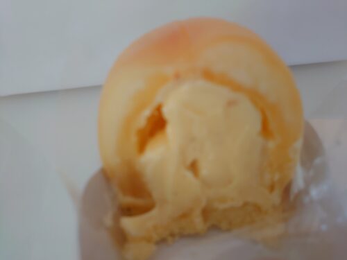 ジューシーなまん丸丸ごとの桃に、口どけなめらかなカスタードクリームが