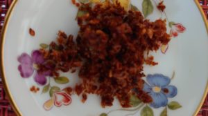とても上品にきざまれた鹿児島産かつおぶしとゴマで、香りと見た目で 味付けはとてもシンプルで、醤油、砂糖、ごま、みりんと化学調味料で鰹節が本来の素材の味が感じられます。