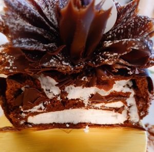 中でも、「フィユドトンヌ」は生クリームよりメレンゲ好きなので、迷わず購入。メレンゲとチョコレートムースの層をチョコレートコーティングのし上部は、黑の石楠花の花の様な斬新なデザインです。メレンゲがサクサクチョコレートも甘すぎず、職人技も光ります❗次回も必ず購入します。¥864税込