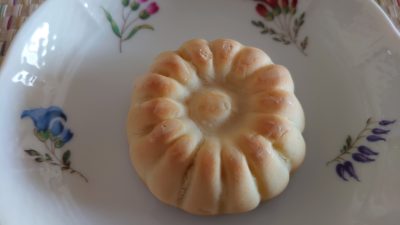 今回一番好みだったが「菊乃寿」菊屋さんの菊の型の、純和風の風貌から想像できない、和菓子と洋菓子のコラボのようなとても調和のとれたお菓子です。それもそのはず高価な福白金時豆を使用し、和菓子にバターと練乳を使用するという、斬新なアイデアです。とてもなめらかで珈琲にも日本茶にも合います。
