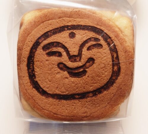 こしあんを生地で包み六面を狐色に焼き上げ、お地蔵さまの焼がとてもかわいいので、
