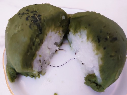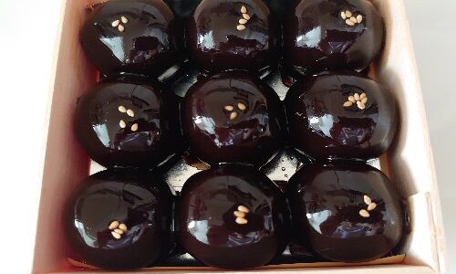 玉露入りあんで、青じそ入りもち米が癖になる美味しさの中身です。当日消費