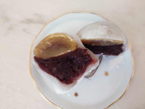 蜜漬けにした国産栗と粒あんをもちもちの柔らかい餅生地で包んであります。翌日までの消費