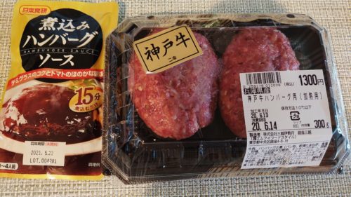 二幸の地下3階精肉コーナーでは焼くだけハンバーグの銀座バーグが人気ですが、その他もちぶたバーグそしてこちらの神戸牛バーグと