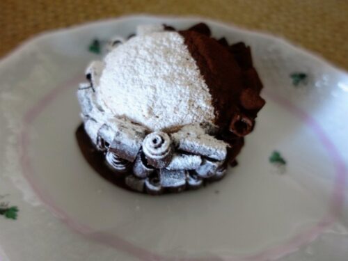 すみれ香るヴェネズエラ産カカオのバヴァロワと甘酸っぱいカシスのクリーム、