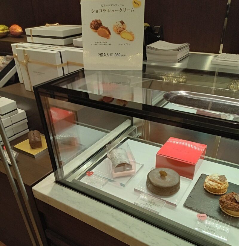 右よりショコラシュークリーム2個入1,080円ガトーショコラ3,240円、