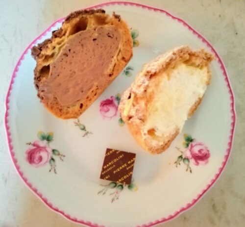 ショコラシュークリーム2個入はサクサク生地でショコラはサントメ&エクアドルカカオを使用