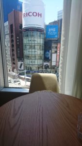 銀座三越の6階のカフェはデビットマイヤーカフェから昭和9年創業の、老舗の丸福珈琲店に近頃変わりました。近隣の東急プラザ銀座の同店とは雰囲気の異なる白ベースの明るい店内に。ひとり昼食でお腹が空いていたので、店名の付いたカリーランチ(カレーでないところが昭和の雰囲気)をいただきました。ロケーションは銀座4丁目の交差点を臨める、THE GINZAというような席に通していただきました。こちらの1席のみ交差点風景が見えます。